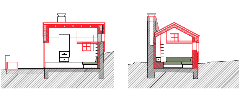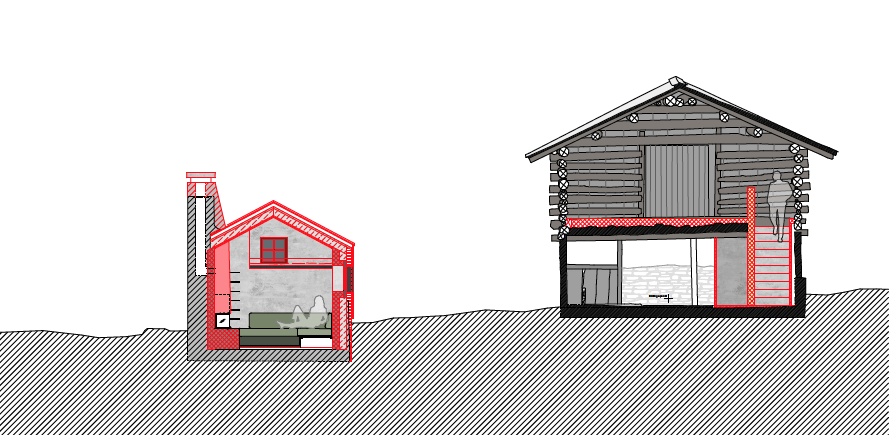 High up in the treetops of the highlands, a refuge is being created with a small interior and an even larger outdoor area. A modern stone fountain connects the cheesemaker's cottage with the spacious barn - another haven of peace that invites you to linger in natural tranquillity with its open knitted structure.