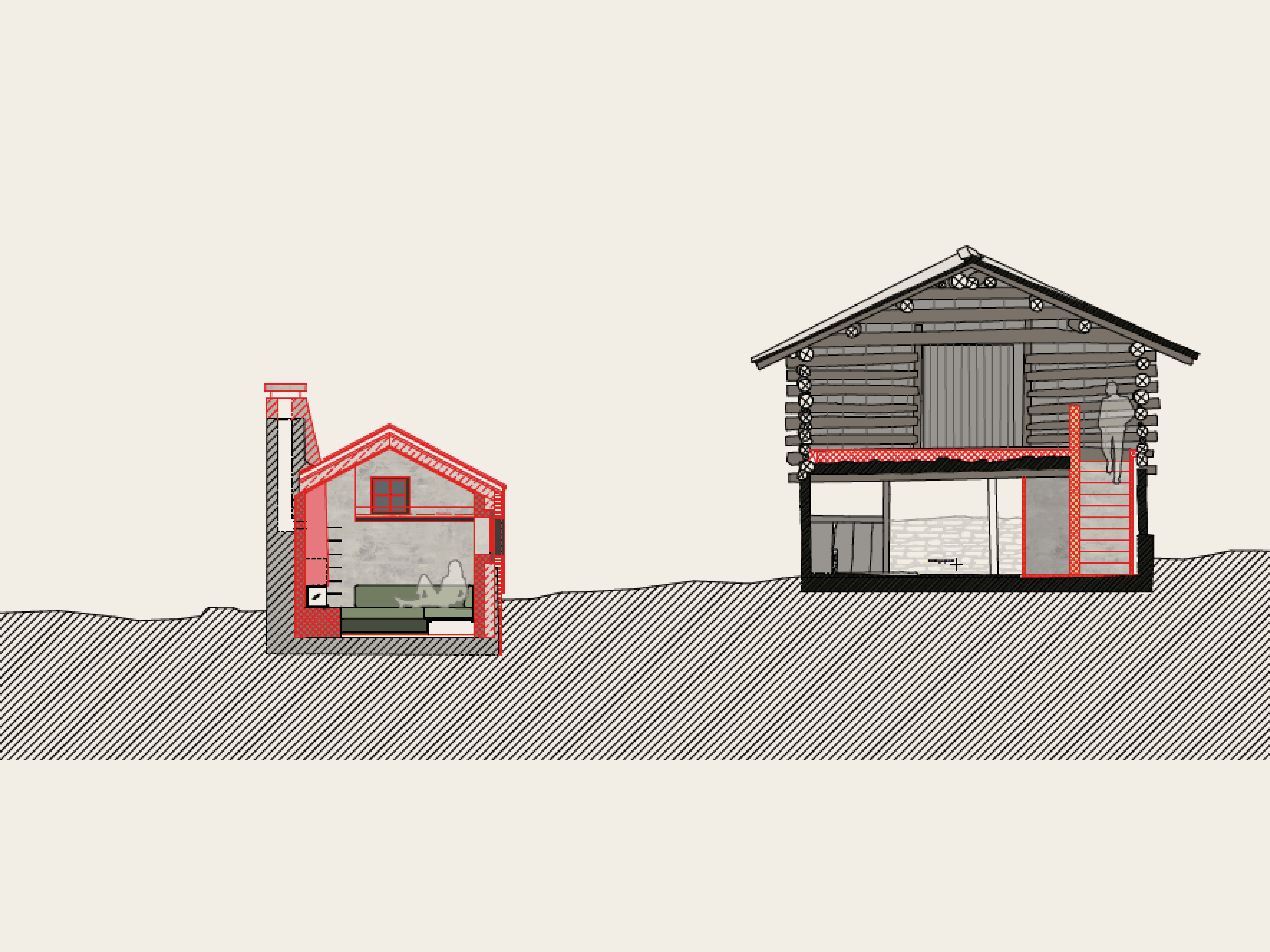 Hoch oben in den Baumwipfeln des Bündner Oberlands entsteht ein Refugium mit kleinstem Innenraum und umso grösserem Aussenbereich. Ein moderner Steinbrunnen verbindet das Käserhäuschen mit dem grosszügigen Stall – ein weiterer Ruhepol, der mit seinem offenen Strickbau zum Verweilen in natürlicher Stille einlädt.